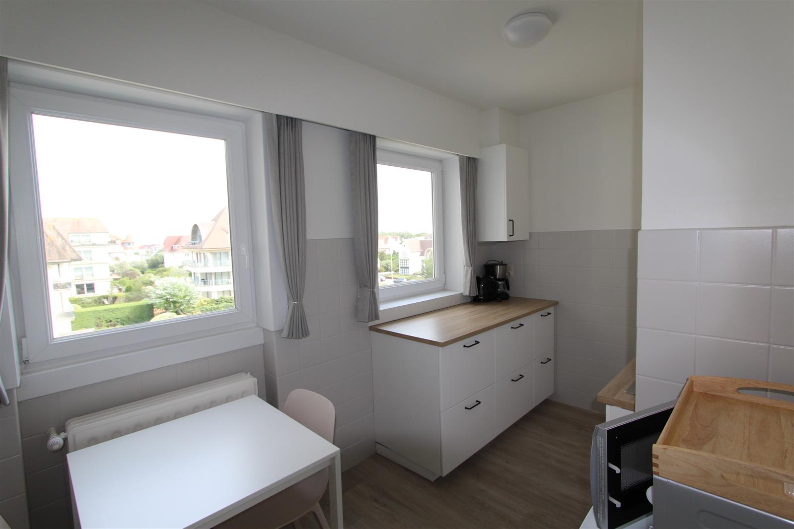 Studio agréable prévu de tout confort, emplacement inclus. Bien situé au coeur du Zoute. (La façade de la residence est en rénovation.)