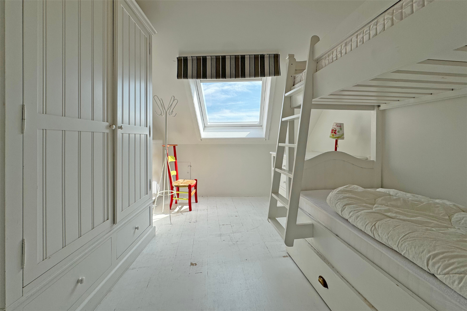 Lumineux duplex appartement met 2 zonnige terrassen aansluitend aan de leefruimte. U geniet een dubbele kamer met eigen badkamer, een 2de dubbele slaapkamer en een slaapkamer met stapelbed. Er is een extra badkamer met douche in de gang. Verder beschikt u over een garagebox in de buurt.
