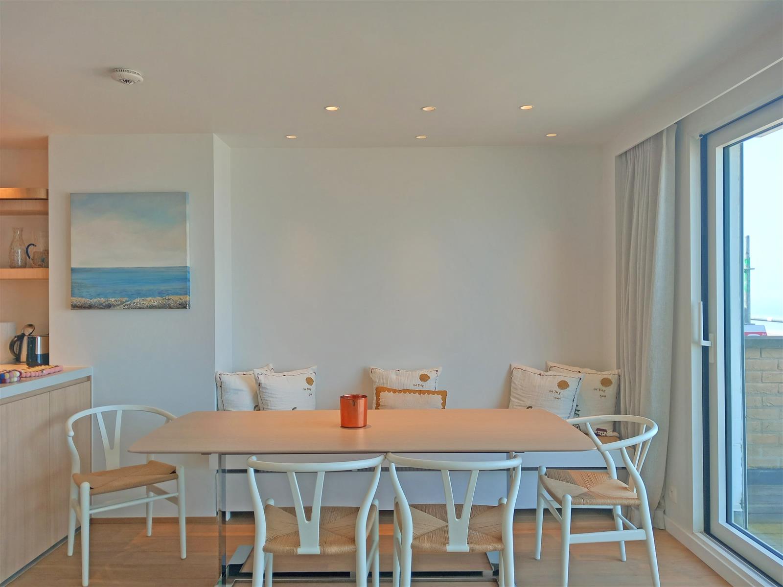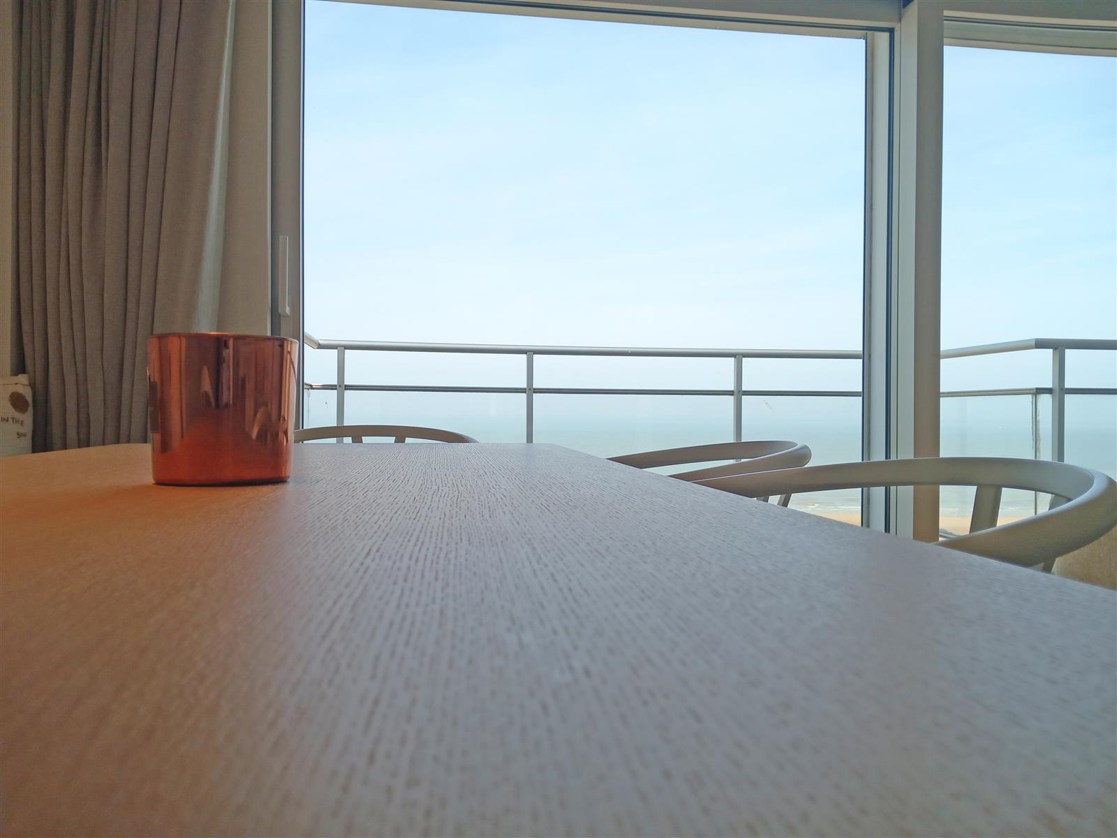 Luxueus afgewerkt appartement met open zicht op zee en een ruim terras aan de voorzijde. Het appartement beschikt een ruime leefruimte met open keuken en toegang tot het terras. Verder zijn er drie slaapkamer, elk met eigen badkamer : De indeling omvat een dubbele slaapkamer met en-suite badkamer voorzien van een ligbad met douchestang, een kinderkamer met twee stapelbedden en een douchekamer, en een derde slaapkamer met twijfelaar en eigen douchekamer. Een private staanplaats is inbegrepen.