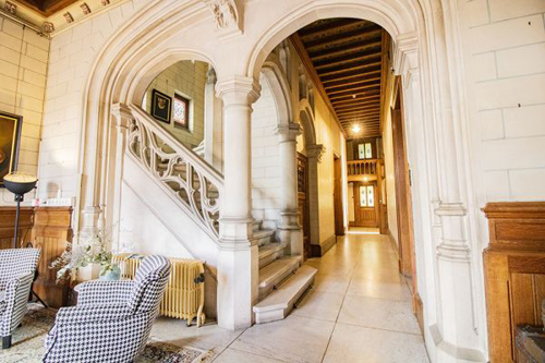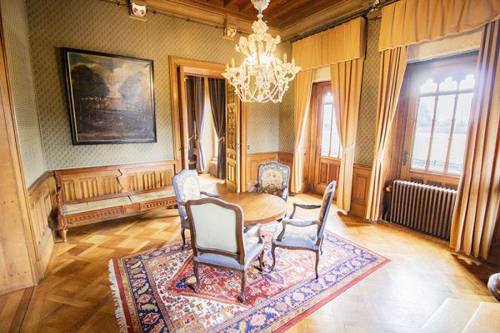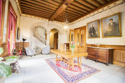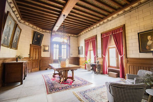 Op het gelijkvloers bevinden zich onder meer een inkomhal, verschillende ontvangstruimtes, een kapel, twee eetkamers en een salon met bibliotheek. De verdiepingen bieden meerdere slaapkamers, elk met eigen sanitair, en tal van bijkomende ruimtes die flexibel kunnen worden ingericht.